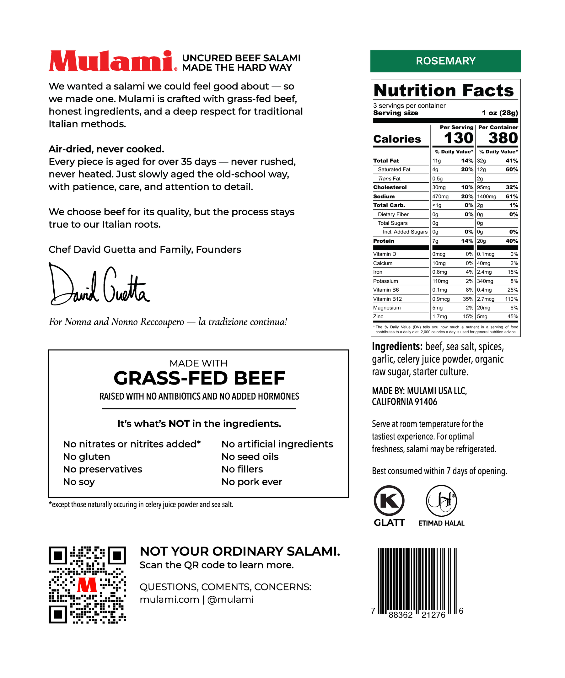 Experience the savory, herbaceous flavors of our Rosemary Salami, a classic Italian delicacy infused with the fragrant, earthy essence of fresh rosemary. Air-dried to perfection, this savory salami boasts a perfect balance of rich, umami depth and aromatic herbal notes, making it a standout addition to any charcuterie spread. Pair it effortlessly with a crisp baguette or your favorite artisanal crackers for a truly satisfying bite with a touch of Mediterranean charm.